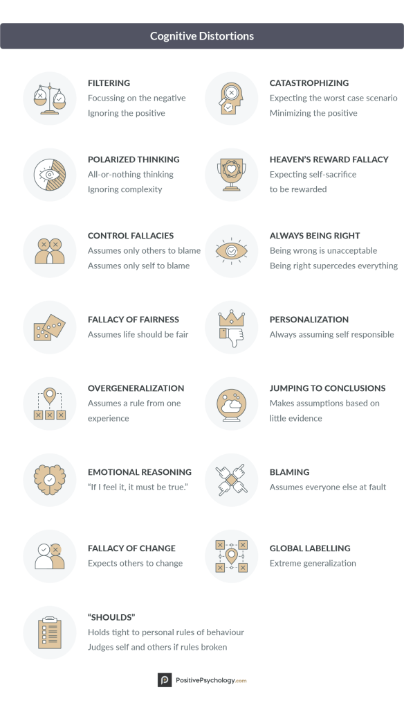 Ugh, then there’s our thoughts. If I had a dollar for every time I told myself I should do or be or say a certain thing… or looked at a benign situation and created a disaster scenario… These are called distorted thinking. It’s a pattern of thinking that’s effected by irrational beliefs and not based on facts. We get into habits of thinking a certain way that is based in negativity and negatively impacts us.